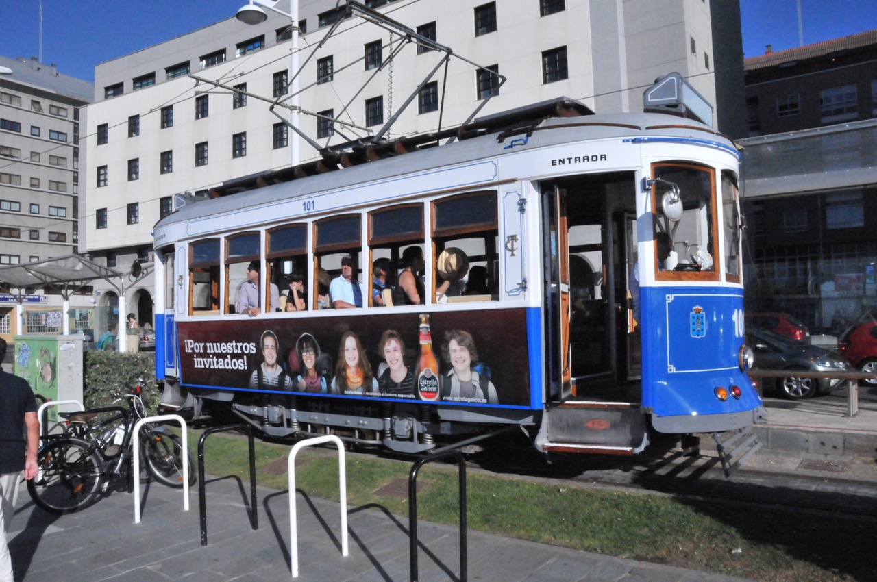 ovanligt att här är dimma 1 dag av 10, på grund av klimatet), men på morgonen kunde vi sikta vi La Coruña och La Torre de Hércules, världens äldsta fyrtorn, som fortfarande är i bruk. (Om man orkar gå upp för de 234 stegen till toppen kan man få nöjet av en spektakulär utsikt över staden och havet.) I mars 2008 hade det kommit en stor våg in över La Coruña och spolat bort bilar och människor, men av detta såg vi inga spår. Det är en mycket stor hamnstad och det finns 3 st marinor. Det var från La Coruña hamn den ”oövervinnerliga” armadan seglade ut mot England 1588. Armadan bestod av 130 spanska krigsskepp, som sedan snöpligt måste vända tillbaka. La Coruña ligger i Galicien och benämns lokalt för A Coruña. La Coruña har över 9 km badstränder med hänförande utsikter och stränderna frekventeras flitigt och många av stränderna är fullbelagd fram till solnedgången vid 21-tiden. La Coruña kallas också för ”glas staden”, här finns också mycket pittoreska spårvagnar.