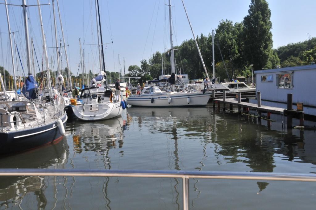 Det var en liten, gammal hamn, med mycket charmiga gamla holländska hus. Hamnen var i det närmaste full men vi hade tur och fick en plats utanför en förfallen flodbåt. Jag bestämde med en gång att här får vi stanna två nätter.