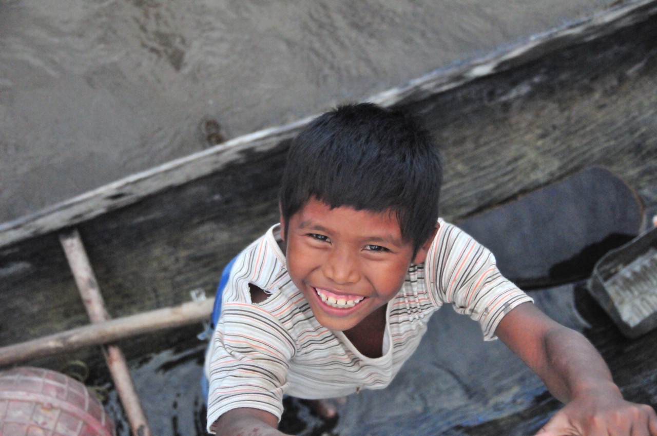 På morgonen vaknade vi med nyfikna barn som paddlade omkring i sina kanoter. Här sov inte barnen till 12:)! Jag fotade lite och fick många glada skratt innan vi slutligen hissade ankare och fortsatte upp mot floden.