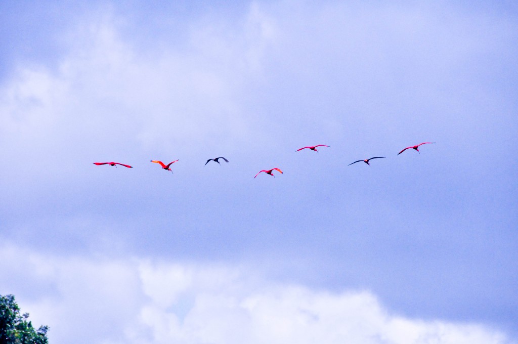 Passerade flera hundratals röda Ibris på väg till Boca de Pedernales.